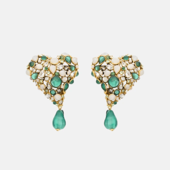 crystal heart earrings in resin and metal