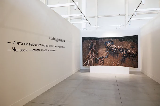 Яркий стенд галереи представляет новые произведения художников, работающих на стыке цифрового и классического искусства. Участники проекта — Станислав Шурипа, Миша Most и Миша Бурый — исследуют взаимодействие виртуального мира с осязаемой реальностью, которое проявляется в различных форматах: живописи, объектах и скульптурах.