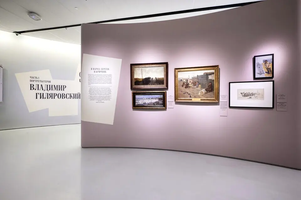 Представить скитания Гиляровского помогают произведения передвижников Владимира Маковского, Абрама Архипова, Василия Верещагина, Иллариона Прянишникова. Героев и сюжеты для своих жанровых произведений члены Товарищества передвижных художественных выставок (ТПХВ) находили в путешествиях по всей стране — они стремились показать тяжелую жизнь без прикрас. Со многими из передвижников Гиляровский потом познакомится лично, а с Ильей Репиным его свяжут годы дружбы и несколько общих баек.