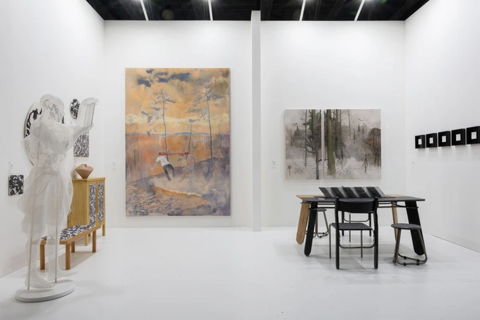 На стенде — живописные работы двух европейских авторов: Джорджа Коэна и Деспины Флессы. Дополняет экспозицию скульптура авторства Ольги и Олега Татаринцевых.