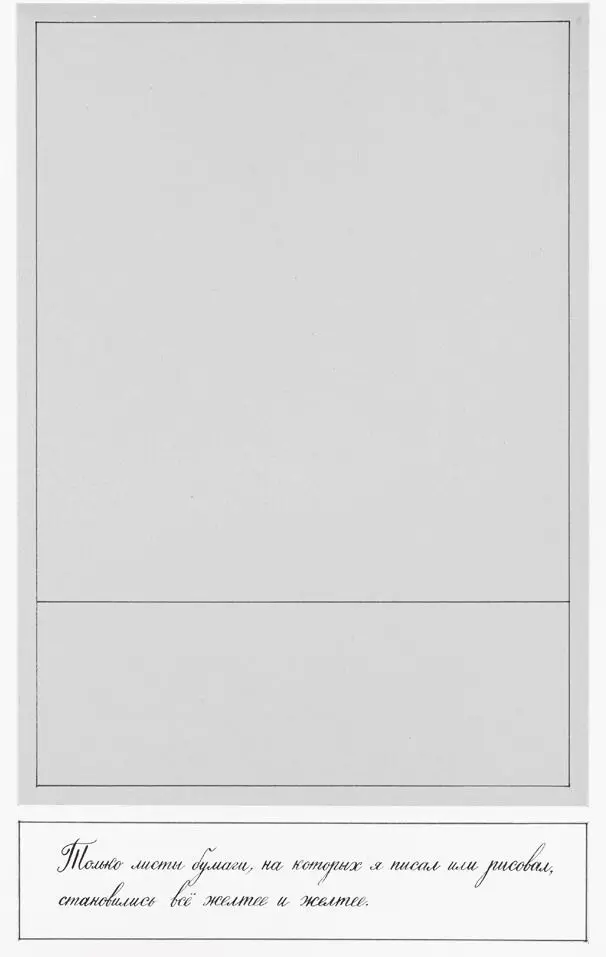 Вот это и есть другой полюс — скажем, завершающий альбом «Желтый» — чистый лист — тот самый, о котором говорится «начать с чистого листа»; здесь он, однако, показывается в конце. Страница за страницей проходят изобразительные мизансцены со словесным сопровождением, излагающим историю кого-то-где-то-тут по прозвищу Желтый; финальный зрительный образ пустого листа выступает в этом повествовательном цикле как олицетворение внесловесного бытия, как немота. За этим пределом простирается мир, каким его можно представить на черте гамлетовcкого The rest is silence, представляющего инверсию самого знаменитого в мире начала — «В начале было Слово». То есть на черте, где послесловесное молчание смыкается с дословесной тишиной. Однако тут же припоминается, что и тишина бывает разной: бывает грозная, томительная, тягостная, мертвая тишина, бывает глухая, то есть неспособная реагировать на звуки, и бывает звенящая, а также гулкая тишина, готовая к восприятию звукового эха. Все это такие свойства тишины, которые характеризуют ее чуткость к резонансам, ее атмосферу, тембр — колорит. А это уже «плоскость» изобразительной метафорики. Так и чистый лист — синоним тишины — оказывается причастным этой метафорике, что и фиксируется словесными «титрами», сопровождающими снизу зрелище чистого листа: «Только листы... становились все желтее и желтее». Нашему воображению предлагается увидеть эту незаполненную поверхность в режиме неопределенно растянутой временной длительности, где она набирает интенсивность желтизны, так что если неопределенность равна бесконечности, то эта желтизна будет совпадать с образом вечности. То есть попросту она предстает в перспективе превращения в иконописный золотой фон.
