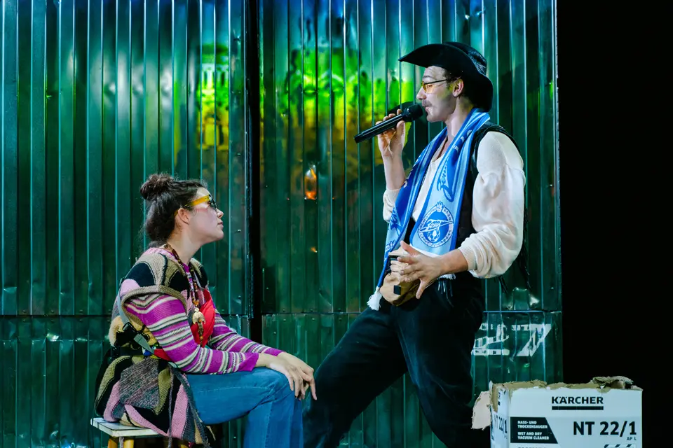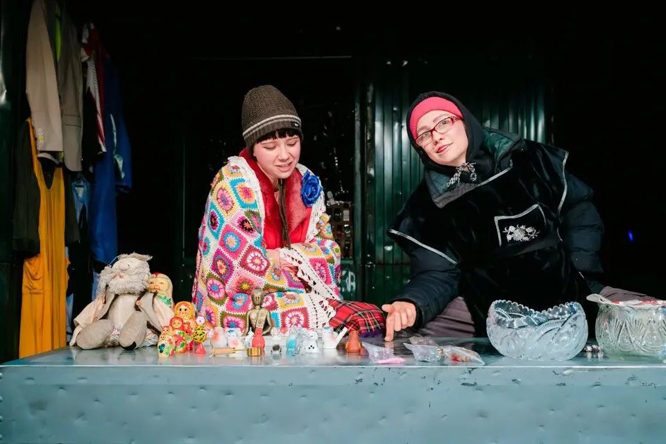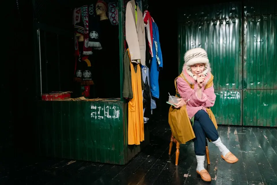Вербатим — идеальный жанр, чтобы передать живую устную речь, но рассказать истории обитателей «блошки» можно по-разному. Например, уйти в социальную драму с присущими ей акцентами на острых общественных проблемах и конфликтах. Режиссер Юрий Квятковский выбирает другой путь и показывает мир блошиного рынка скорее как карнавал или сказочное королевство с его ослепительным хламом и волнующе нереальными судьбами. Зритель здесь — счастливый наблюдатель, которому удалось заглянуть за кулисы, совершить вылазку в этот густой и красочный параллельный мир.