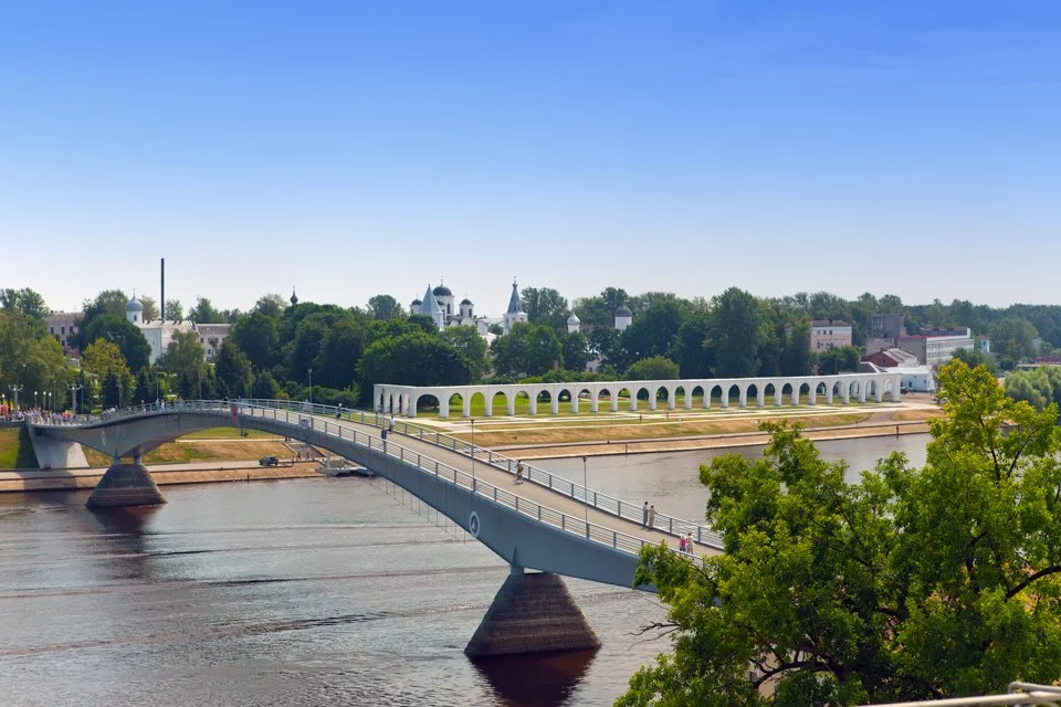 От Детинца на Торговую сторону ведет пешеходный мост, который новгородцы ласково называют «горбатым» за его характерный изгиб. Переходя на другой берег Волхова, задержитесь на его середине — это лучшая обзорная точка в городе. С одной стороны открывается панорама кремля с его башнями и золотыми куполами Софии, с другой — белоснежная аркада Ярославова дворища. Фотографии, сделанные в этой локации, почти всегда становятся главными в тревел-альбоме.