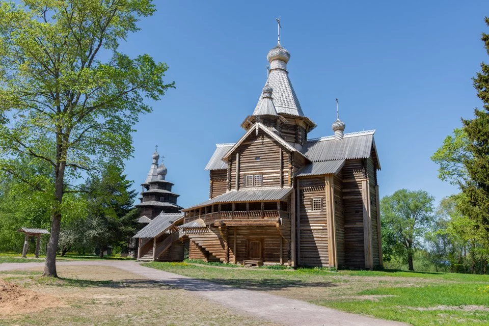 Музей «Витославлицы» расположен на берегу озера Мячино, к югу от Великого Новгорода. На просторной поляне среди деревьев стоят подлинные деревянные церкви, избы, амбары и мельницы. Их перевезли сюда из разных деревень Новгородской области. Всего на территории музея более 30 объектов, которые рассказывают о быте и укладе жизни наших предков лучше любого учебника.