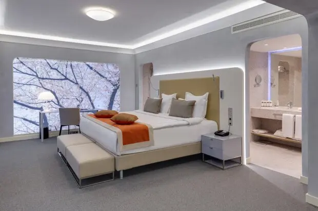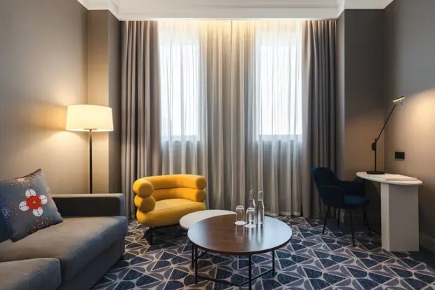 Несмотря на расположение в самом сердце столицы, отель переносит гостей в атмосферу Европы — спокойную, выверенную и безупречно организованную. Здесь все продумано до мелочей: в оформлении использованы только натуральные материалы — дерево, камень и металл, мягко сочетающиеся по фактуре и цвету.