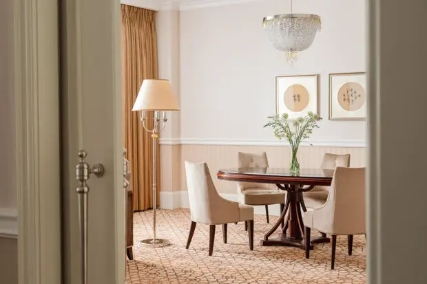 Интерьеры отеля выдержаны в английском духе: дерево, плотные ткани, мягкий свет, тишина. В 230 номерах и люксах — то самое ощущение старомосковской респектабельности, за которым сюда приезжают и которое не выходит из моды. Многие выбирают его за предсказуемость в лучшем смысле слова — качественный сервис, центровая локация и деловая инфраструктура, где все под рукой: переговорные, фитнес, круглосуточный лобби-бар.