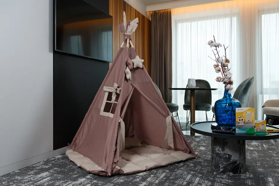 Мы уделяем огромное внимание экологичности: минимум пластика, стеклянные бутылки, QR-коды вместо бумажной полиграфии, детские раскраски на экобумаге. Это маленькие, но важные шаги, которые очень ценит современный гость.