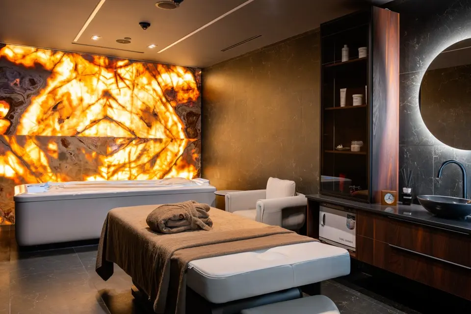 За год нам удалось многое. Мы существенно расширили спа-комплекс: добавили соляную сауну, душ впечатлений, новые массажные кабинеты и создали отдельный спа-люкс — просторную приватную зону с джакузи и хаммамом для дней рождения или романтических вечеров.