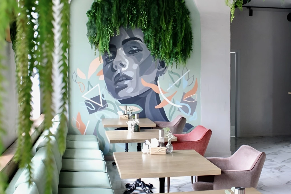 Это городское кафе с европейской и современной кухней. Здесь можно заказать итальянскую пиццу и пасту, суп, салат или сочный стейк. Интерьер оформлен с зелеными акцентами: над столами свисают тропические ветви, на подоконниках стоят растения.