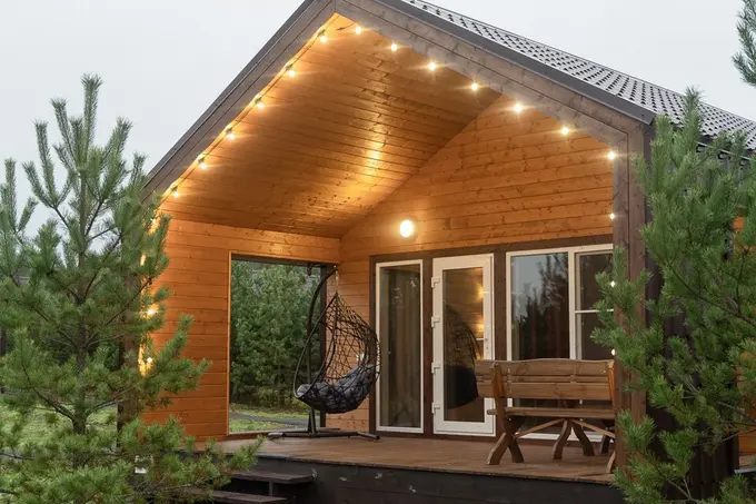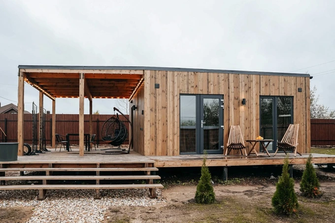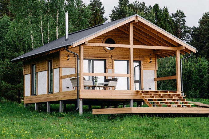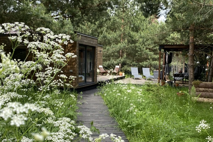 В домиках создана атмосфера современной технологичной дачи: каждый оформлен в уникальном стиле (от сканди до лофта) и управляется через колонку Алиса. Вечера здесь проводят на личных террасах, где установлены индивидуальные горячие чаны на дровах и современные грили для барбекю.