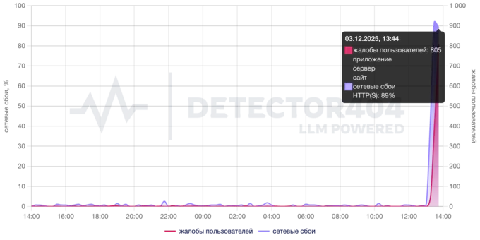 Downdetector фиксирует как сетевые сбои, так и жалобы пользователей. Чаще всего о проблемах сообщают жители Хабаровского края, Сахалина, Югры. В сервисе «Сбой.рф» большинство жалоб поступают из Москвы и других областей по всей России.
