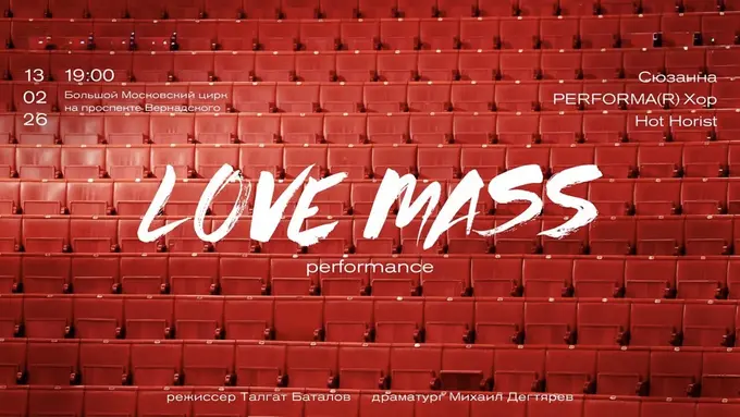 13 февраля 2026 года, в преддверии Дня всех влюбленных, в Большом Московском цирке на проспекте Вернадского состоится новое событие фестиваля Performa(R) — Love Mass performance. Арена превратится в храм, где пройдет музыкальная литургия с певицей Сюзанной.
