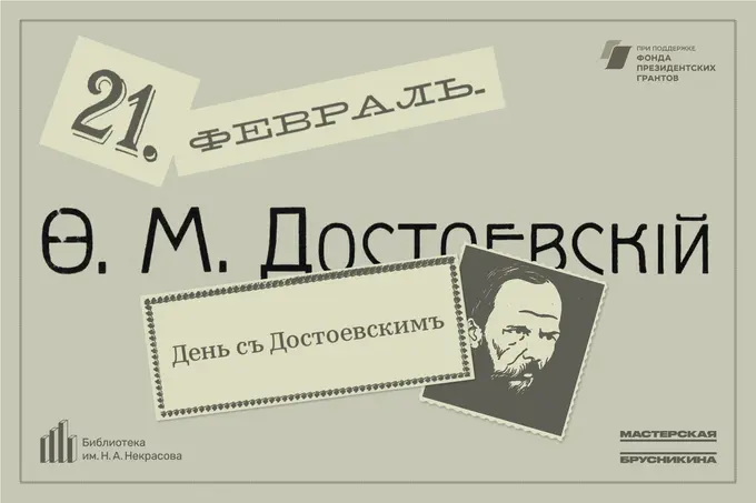 21 февраля Библиотека имени Н. А. Некрасова и театр «Мастерская Брусникина» проведут фестиваль, посвященный Федору Михайловичу Достоевскому: «горящему огню» — по прозвищу домашних, «русскому Данте» — по рецензиям современников, «всаднику в пустыне, с одним колчаном стрел» — по оценке будущих исследователей.