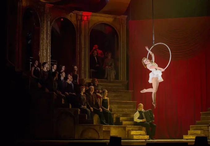 Со дня самой первой премьеры оперетты «Принцесса цирка» прошло почти 100 лет. В постановке Московского театра мюзикла знакомая история на музыку венгерского композитора Имре Кальмана приобрела новую форму и стала синтетическим спектаклем. Цирк стал не местом действия, а его сутью.