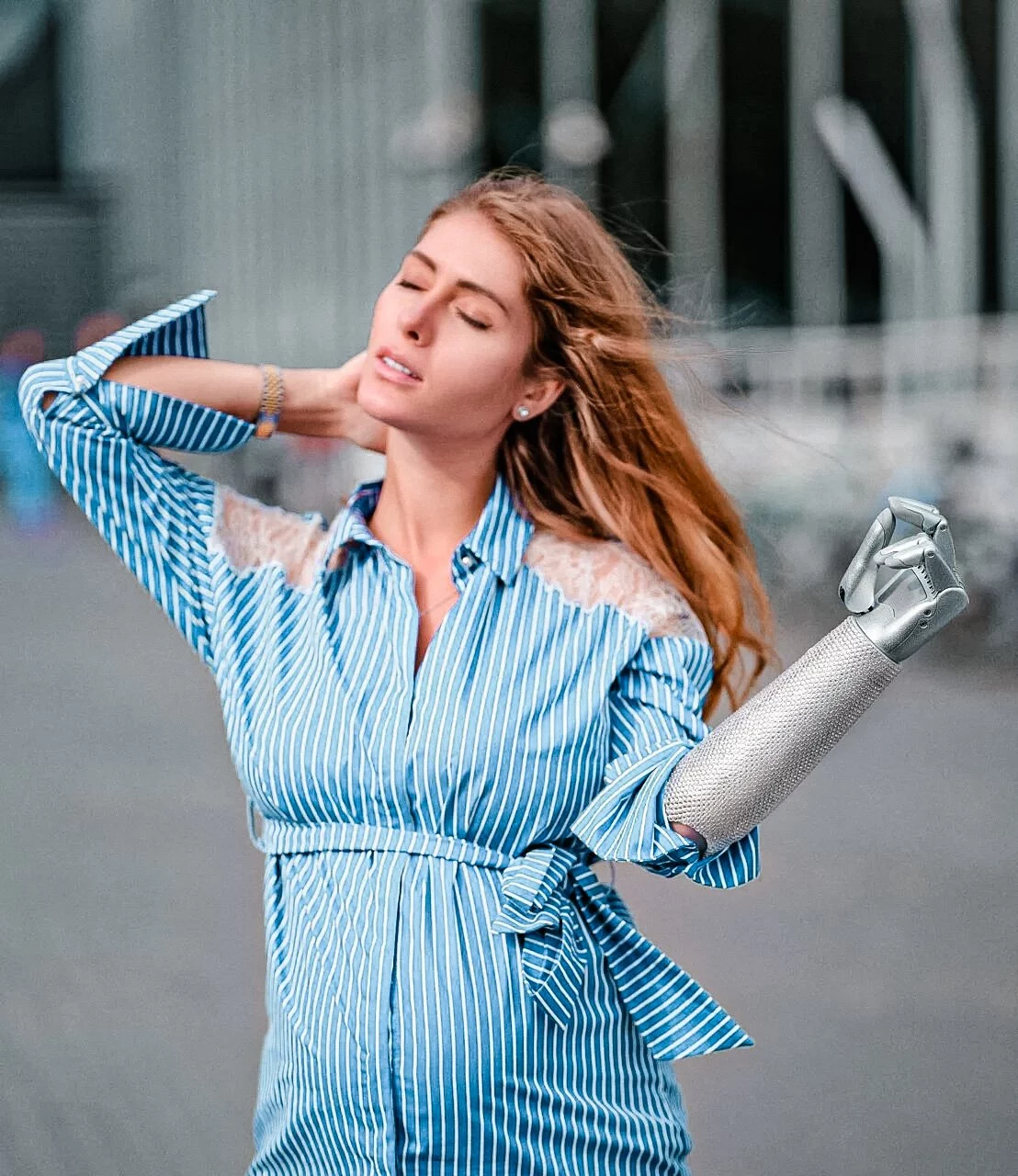 Девушка — амбассадор киберрук российской компании «Моторика». Для Вероники специалисты изготовили два дизайнерских протеза — с шестью тысячами камней Swarovski и модель в глянцевом розовом цвете.
