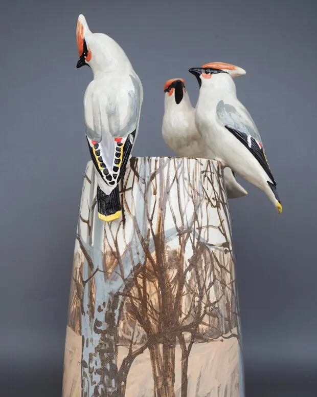 Среди множества близких авторам тем они отдают предпочтение декоративному переосмыслению птиц и растительных форм и планируют представить на выставке посвященную им серию интерьерных предметов (сосуды, вазы, зеркало, настенные панно, лампу), елочные игрушки и отдельные коллекционные вазы.