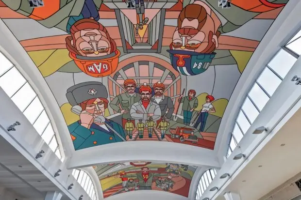 Не все знают, что художественная роспись художника Дмитрия Аске, знаменитого созданием картин в формате мозаичных рельефов из фанеры, монументальных росписей, панно и скульптур для общественных пространств, располагается на потолке второго этажа одного из старейших вокзалов столицы. Ее сюжет рассказывает о пути от строительства и запуска Байкало-Амурской магистрали (БАМ) в 1984 году до ее современного этапа модернизации. Зритель может увидеть, как сменяются поколения строителей и железнодорожников и как прошлое переходит в будущее. Прогуливаясь по залу ожидания, словно перемещаешься из вчера в завтра. Мурал создан на основе документальных и художественных материалов о строительстве БАМа: фотографий, кадров кинохроники, плакатов, графики. Все эти элементы художник творчески переосмыслил и объединил в единую трехчастную композицию.