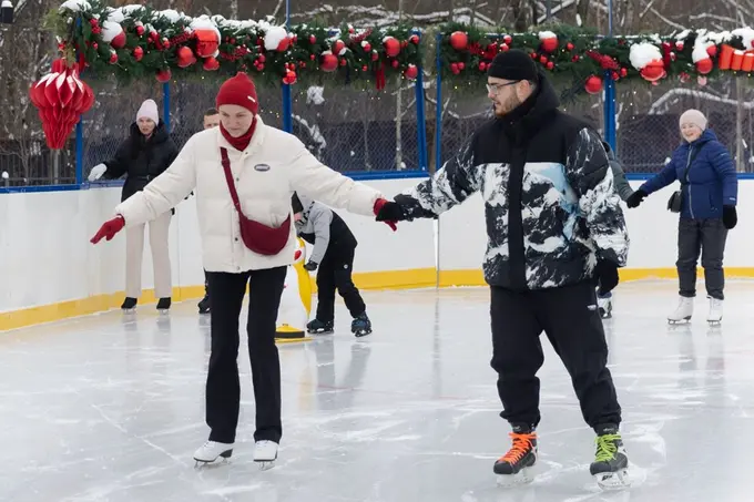 Сходить на каток зимой — обязательный пункт программы. А если совместить приятное с прекрасным, получится вдвойне красиво: каток недалеко от усадебного парка появился недавно. Здесь работает крытый павильон с пунктами проката и заточки коньков, удобная раздевалка и кафе на территории бывшего стадиона «Огонек», а еще проводятся регулярные мастер-классы по фигурному катанию. Так что план такой: встретить романтичный праздник на льду под вечерними огнями и с любимыми мелодиями из динамиков.
