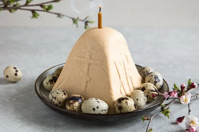 Творожная пасха символизирует Землю обетованную — место покоя и радости. В этом десерте пасхальные символы легко считываются: белый творог символизирует чистоту, а мед, орехи и изюм обещают, что жизнь будет сладкой.